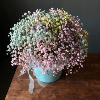 Этот уникальный и изысканный букет перенесет вас в мир безмятежной красоты природы. Легкие цветочные клубочки гипсофил создают впечатление облаков одуванчиков, пленяющих своей нежной игривостью. Они словно облака, раскинувшиеся на голубом небе. Сочетание разноцветных гипсофил придает букету неповторимую гармонию и яркость.
